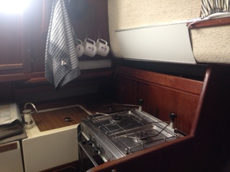 Purjeet dacronia ISO, Genoa1 ja Genoa 2, Myrskygenoa, lämmitin, uuniliesi, sprayhood, VHF, radio, ankkureita, sammutin, köysiä, yms.